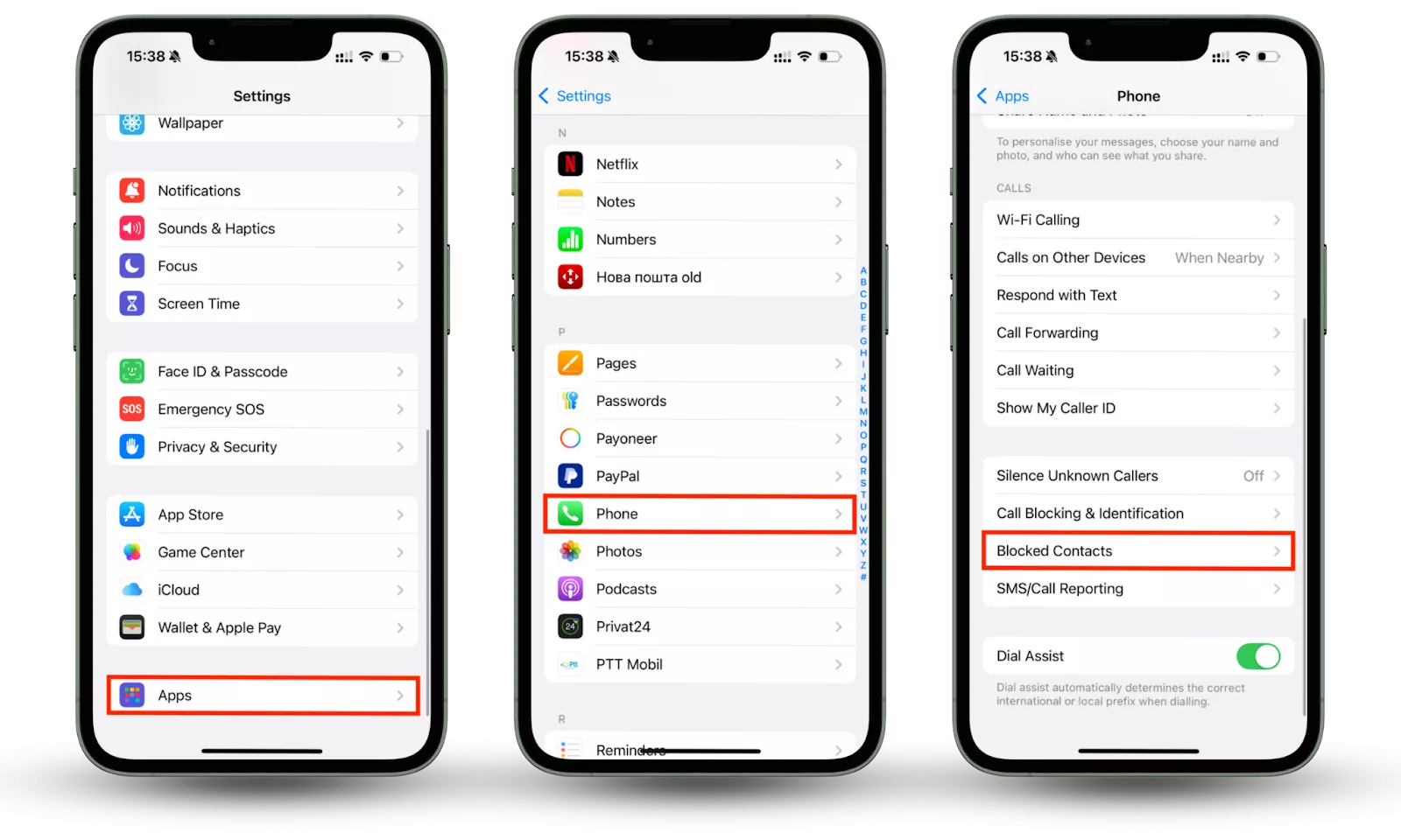 - 前往設置 > 電話 > 阻止的聯繫人(在 iOS 18 及更高版本中,設置 > 應用程序 > 電話 > 阻止的聯繫人)。