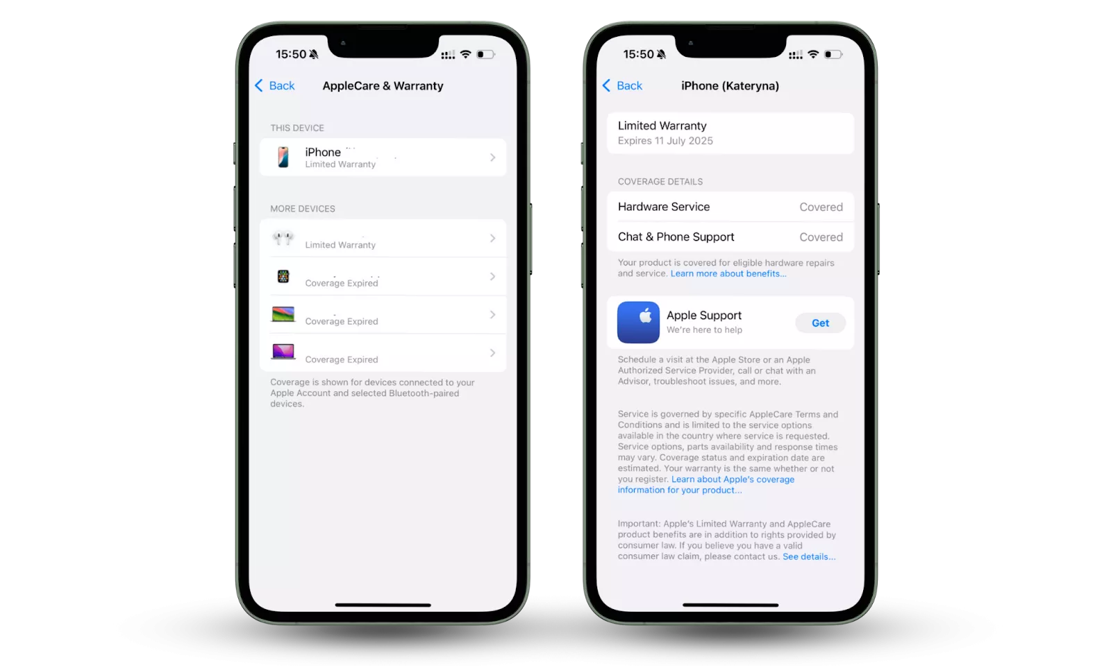 - 前往設置 > 通用 > AppleCare&Warranty。