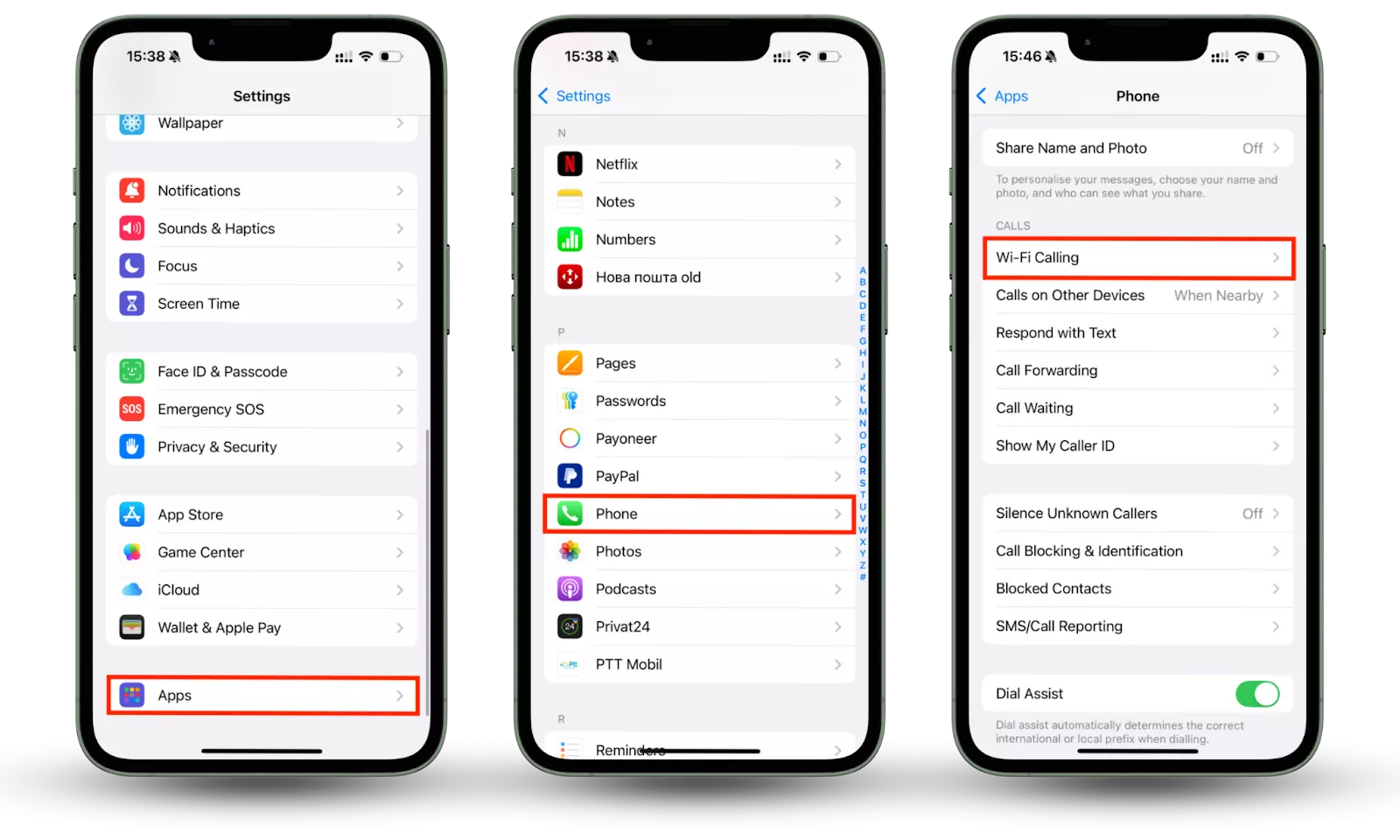 - 前往設置 > 電話 > Wi-Fi 通話(在 iOS 18 及更高版本中,設置 > 應用程序 > 電話 > Wi-Fi 通話)。