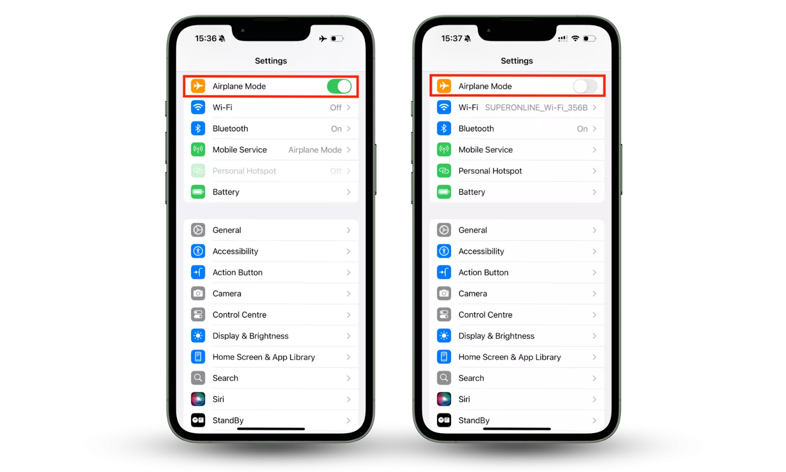 - 飛行模式關閉您的蜂窩網絡連接,僅允許基於 Wi-Fi 的消息發送和通話。檢查您是否不小心將手機設置為飛行模式或在飛行後忘記將其關閉。