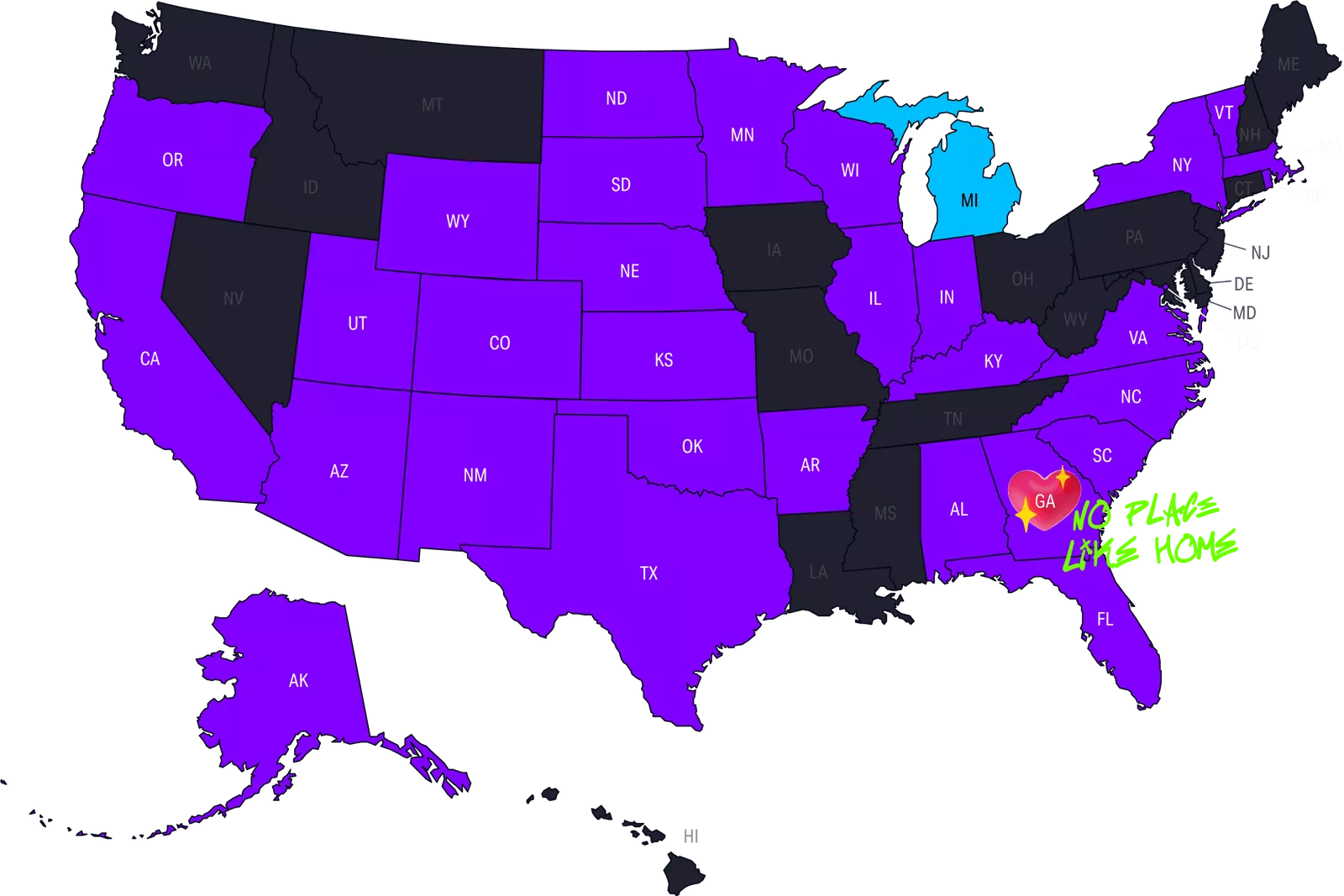 夏威夷 愛達荷州 蒙大拿 內華達州 華盛頓 馬里蘭州 俄亥俄州 西弗吉尼亞州 |