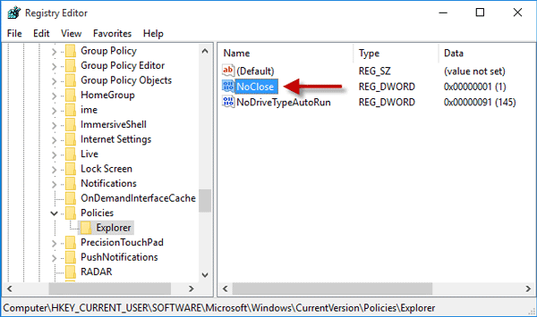 ComputerHKEY_CURRENT_USERSOFTWAREMicrosoftWindowsCurrentVersionPoliciesExplorer