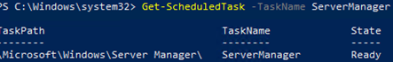 Get-ScheduledTask -TaskName ServerManager | Disable-ScheduledTask