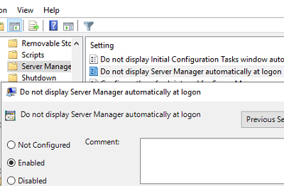 轉到計算機配置 - >策略 - >管理模板 - >系統 - >服務器管理器並啟用請勿在登錄處自動顯示服務器管理器政策。