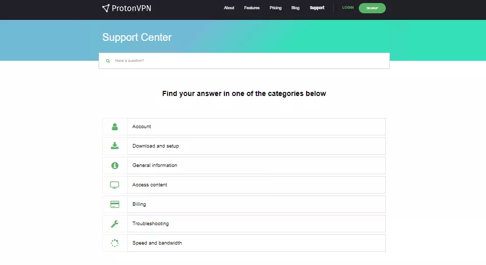 如果您遇到任何問題,您的第一站是ProtonVPN 知識庫,您可以在其中找到多個類別的相關問題的答案,例如帳戶或者下載並設置。