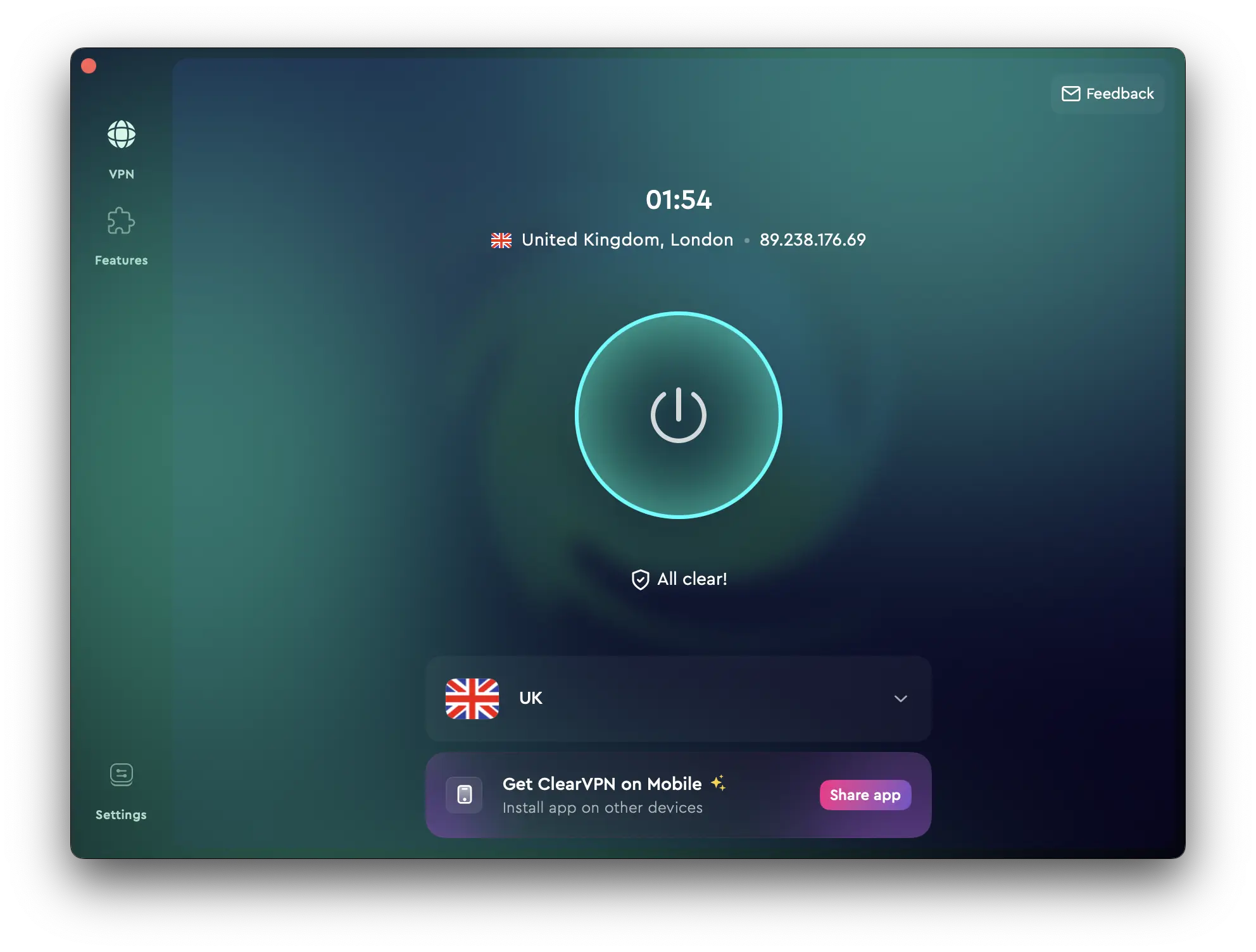 使用VPN是一個簡單的過程。不需要技術技能或設備。這是您可以使用ClearVPN進行操作的方法 - Windows,MacOS,Android和iOS(iPhone和iPad)可靠且用戶友好的優質VPN服務。