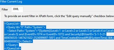 帶有FilterHashtable選項的Get-WineVent過濾器有一些限制。如果您需要使用帶有許多標準的複雜查詢來選擇事件,則需要使用FilterXML標誌,它允許您使用XML查詢進行選擇。與FilterHashtable類似,FilterXML過濾器是服務器端。這意味著您很快就能獲得結果。