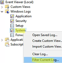 eventvwr.msc; - 查找您要創建查詢的日誌,然後單擊過濾器當前日誌;