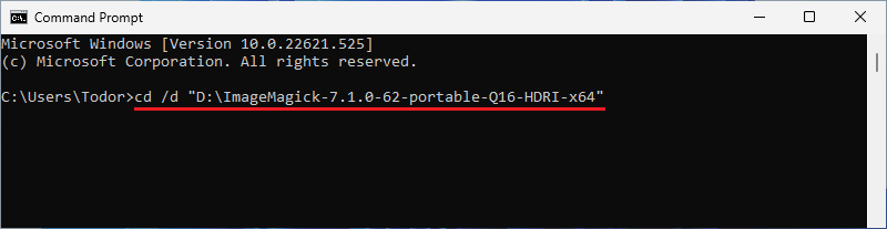“ D:ImageMagick-7.1.0-62-Portable-Q16-HDRI-X64”然後按進入。