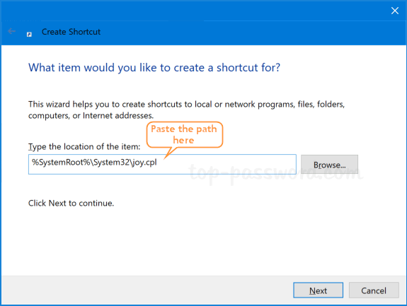 方法4:創建桌面快捷方式來打開遊戲控制器設置