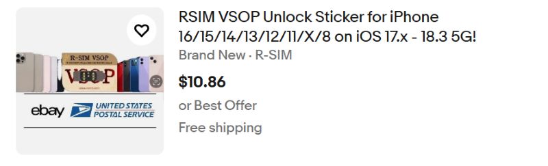 如果你在美國,易趣是最常見的市場。您會發現流行的變體,例如R-是 17,R-是 19, 和VSOP那裡。這些通常支持以下 iPhone 型號:11系列最多15個並致力於iOS 17 和 iOS 18。並且要小心——許多嘗試過的用戶R-是 16eBay 說它根本不起作用。因此,購買該產品需要您自擔風險。