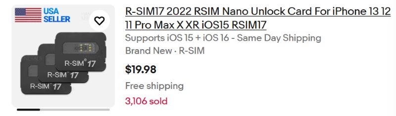 R-SIM 卡售價為 18 美元至 20 美元在 eBay 商店上。即使是較新的型號,例如R-SIM 17、VSOP 和 R-SIM 19落入同一範圍。但是,如果您批量購買速賣通,成本可以顯著下降,4 美元到 10 美元之間每件。