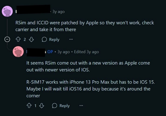 這還不是全部。新版本如R-SIM 俱樂部 2和R-SIM 19/19 Pro聲稱支持iOS 17和iOS 18,致力於iPhone 13 至 iPhone 16。然而,許多 Reddit 用戶表示它們不起作用。例如,一位用戶分享了: