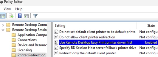如果您使用 Windows Server 作為 RDP 服務器並安裝了遠程桌面會話主機 (RDSH) 角色,則默認情況下應該可以通過 Easy Print 重定向本地打印機。不需要額外的步驟。