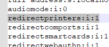 - 如果您使用配置為 RD RemoteApp 的程序,其 *.RDP 文件必須包含允許打印機重定向的選項: