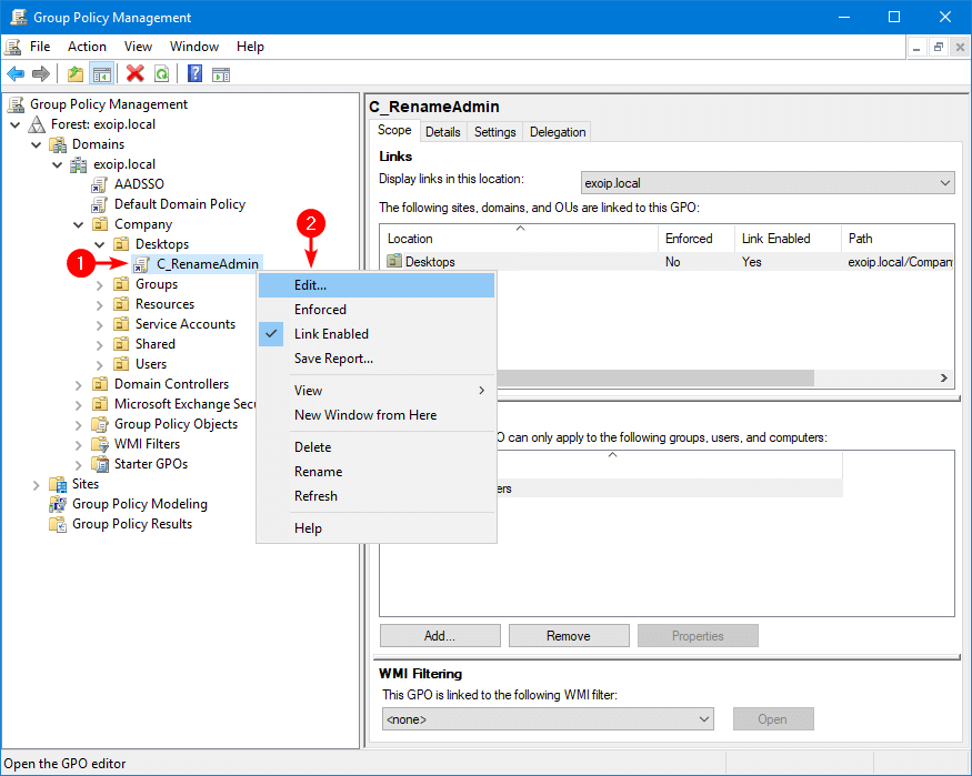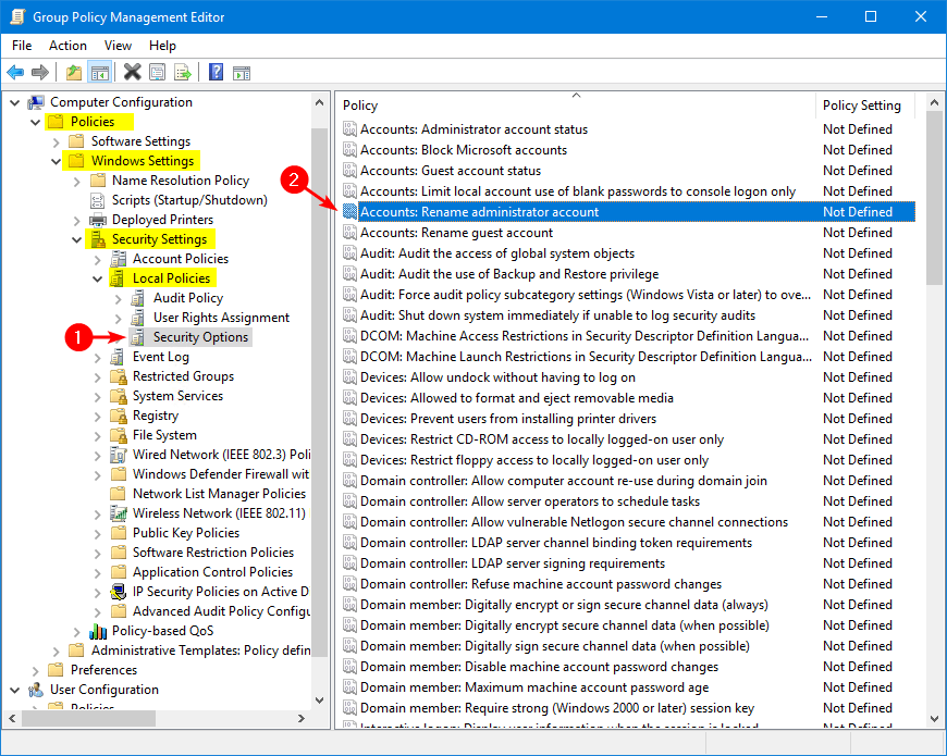 要使用組策略對象 (GPO) 重命名管理員帳戶,您可以按照以下步驟操作: