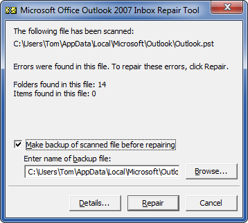 在開始修復過程之前,請確保您有 pst 文件的備份。