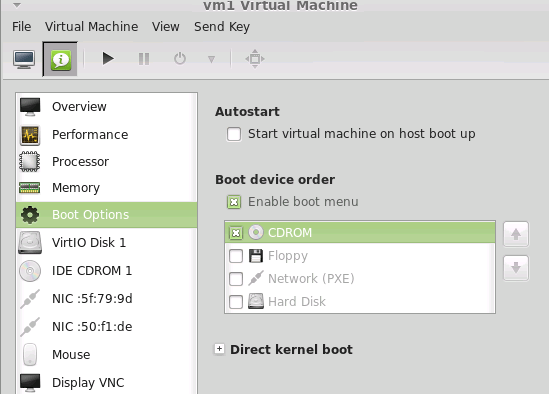 - 單擊引導選項選項卡。打鉤啟用引導菜單。檢查CDROM項目,然後將CDROM項目放在引導設備列表的頂部。單擊應用以節省您的更改。