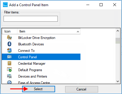 第 4 步:在添加控制面板項目窗口,選擇控制面板。