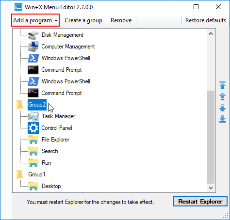 如果您願意,可以使用 WinX 菜單編輯器來完成此過程。