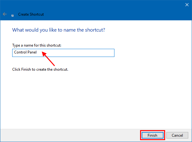 完成後,控制面板快捷方式已在您的桌面上創建。