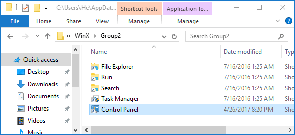 完成後,重新啟動計算機,您將看到控制面板WinX 菜單中的項目。