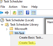 taskschd.msc命令 - 展開任務調度程序庫樹。為了方便起見,為您的自定義計劃任務創建一個單獨的文件夾。右鍵單擊並選擇創建任務。