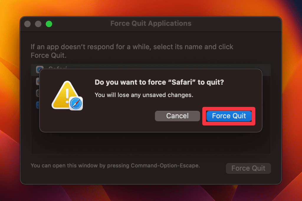 要在 Mac 上強制退出 Safari,請按照以下步驟操作: