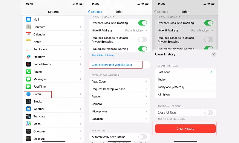 清除 Safari 的緩存和歷史記錄可以幫助解決該問題。為此: