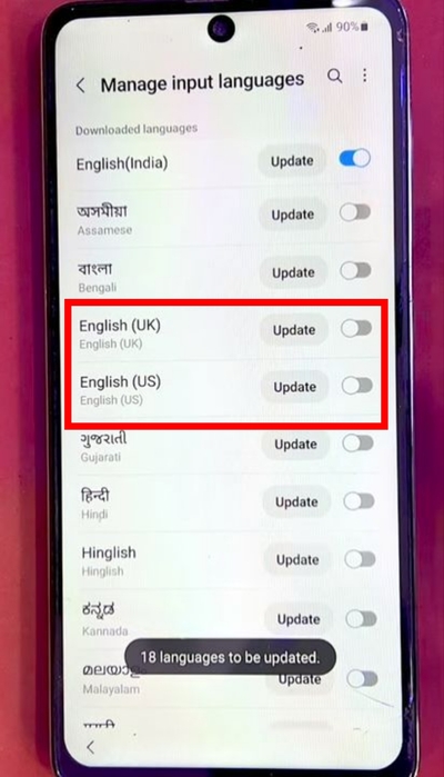 - 選擇並更新/激活英語(英國)和英語(美國)。