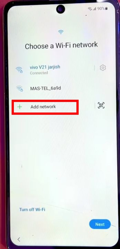 - 當出現“選擇 Wi-Fi 網絡”屏幕時,單擊“添加網絡”。