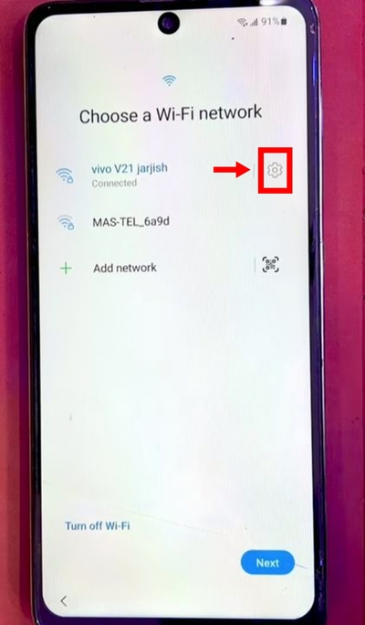 - 返回 Wi-Fi 屏幕,點擊已連接網絡的“設置圖標”。