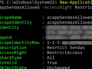 New-ApplicationAccessPolicy -AppId "xxxxxxx-xxxx-xxxx-xxxx-xxxxxxxxxxxx" -PolicyScopeGroupId azappSendasAllowed -AccessRight RestrictAccess -Description "Resrtict SendAs Policy"