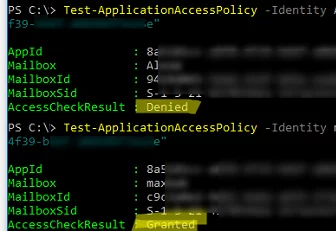 Test-ApplicationAccessPolicy -Identity [email protected] -AppId "xxxxxxx-xxxx-xxxx-xxxx-xxxxxxxxxxxx"