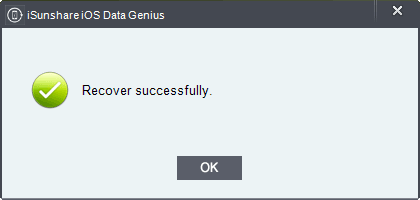2. 立即出現一個對話框,顯示您選擇的所有數據已成功從 iTunes 備份文件中提取並導出到您的 PC。