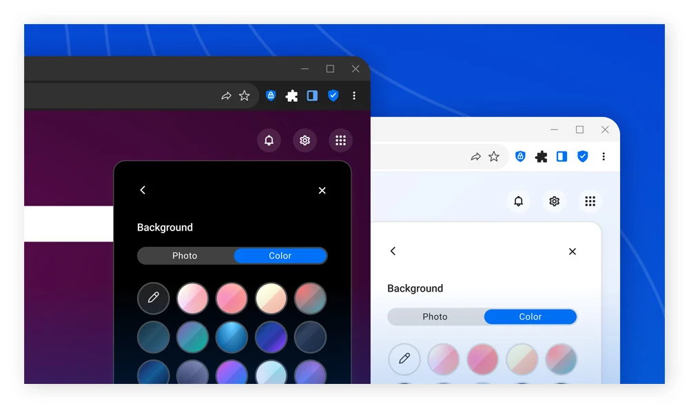 現在,您可以通過在一系列引人注目的視覺效果中進行選擇、使用每日輪播圖像循環瀏覽它們或上傳您自己的照片或藝術品來自定義背景。為了獲得更簡約的視圖,您還可以選擇純色背景色或舒緩的漸變。無論您想要什麼,我們都可以輕鬆自定義 Avast Secure Browser 以符合您的個人風格。