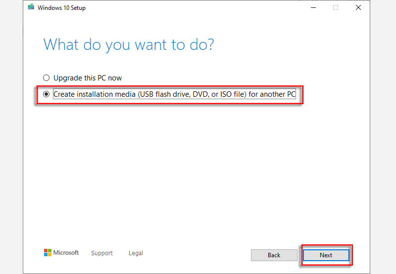 步驟 5:啟動至 Windows 10 安裝介質並開始安裝過程。