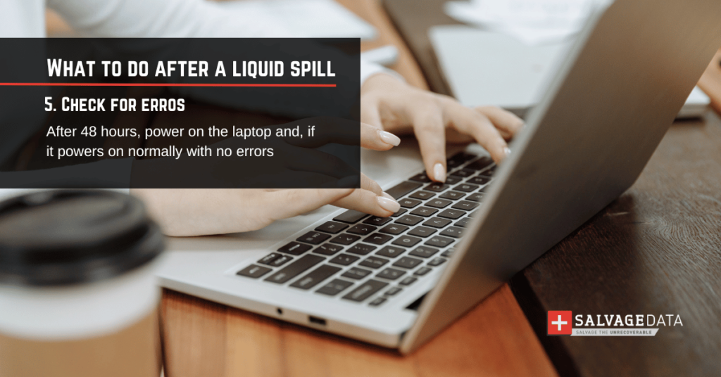 耐心等待 48 小時後,您可以嘗試打開進水的筆記本電腦。如果開機後沒有顯示錯誤消息,則可以安全使用您的設備。但是,筆記本電腦被潑水可能會導致其內部組件受損。即使筆記本電腦完全乾燥後,水仍然會腐蝕和生鏽。因此,請利用這個機會對筆記本電腦數據進行備份。