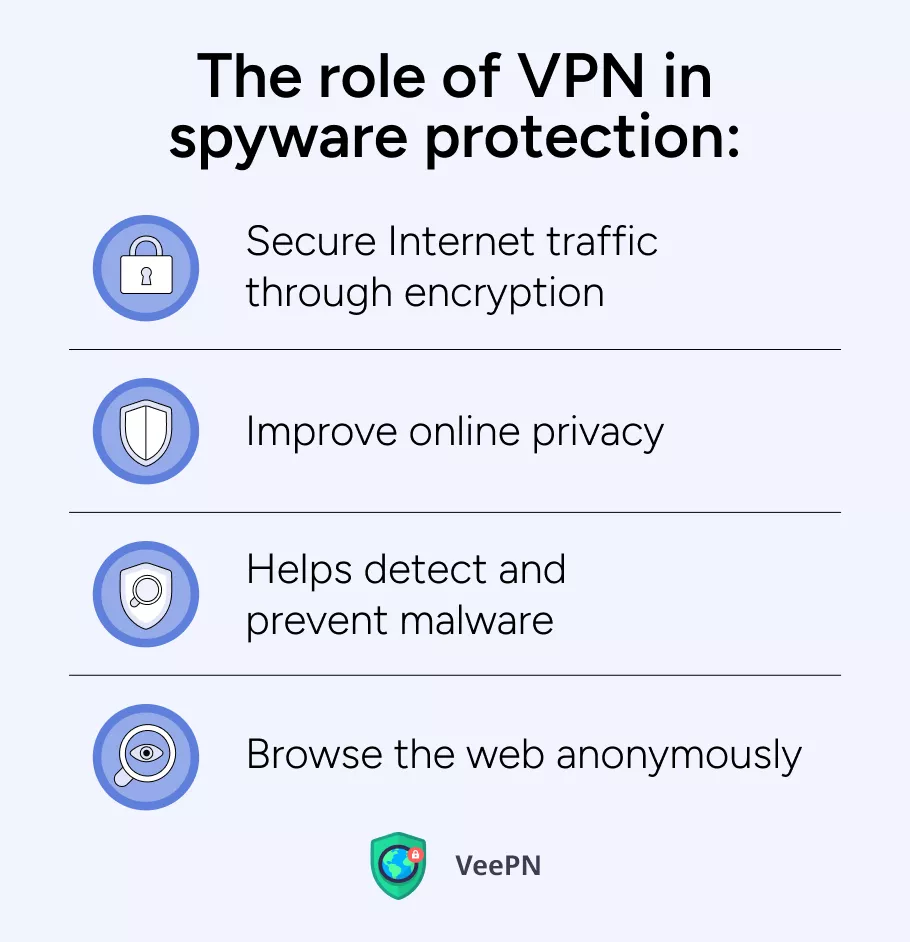 🛡️幫助識別和避免惡意軟件:VeePN 等 VPN 應用程序具有內置的惡意軟件安全功能,可以幫助檢測和阻止間諜軟件、惡意網站和其他危險。