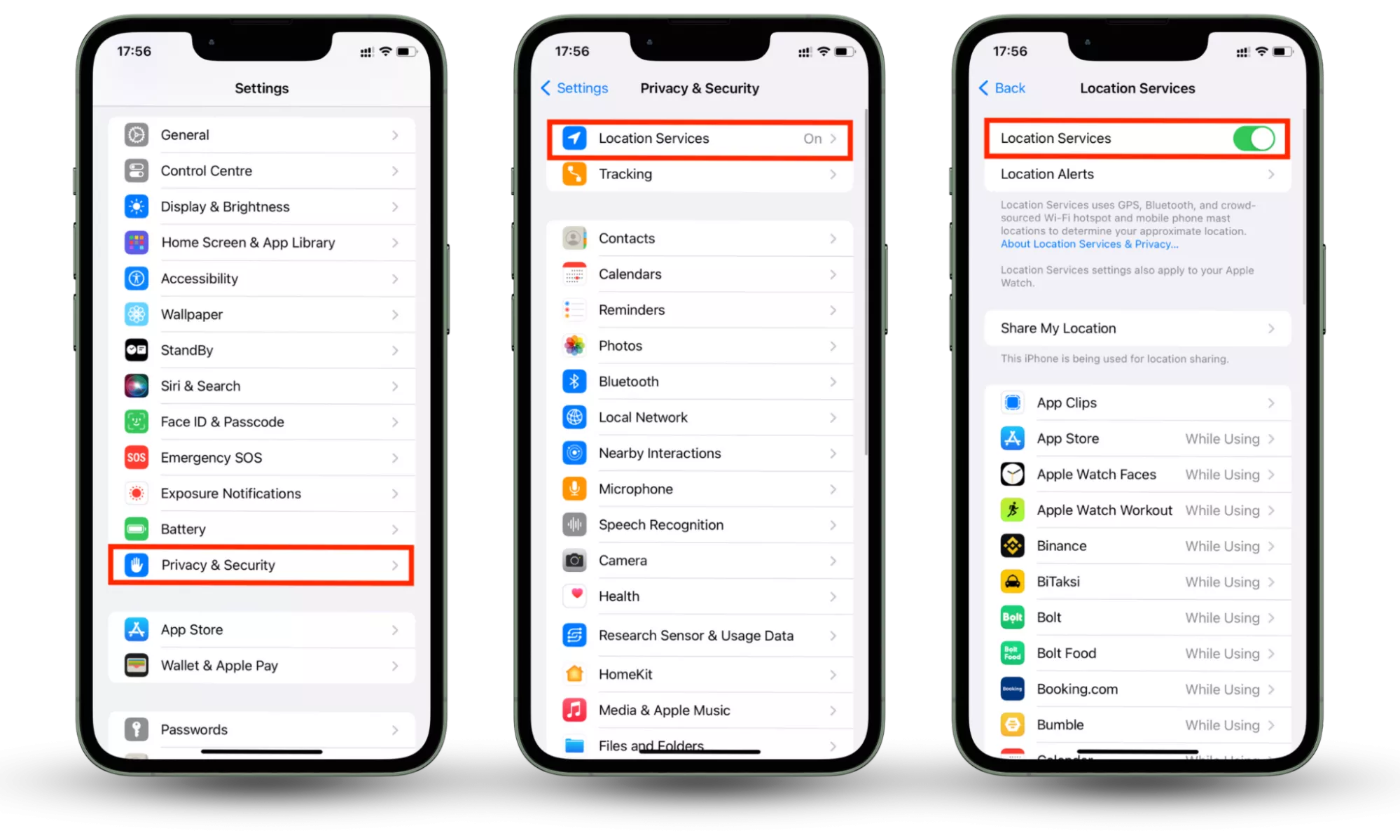 步驟1-2:打開設置>點擊隱私和安全性。點擊位置服務並查看哪些應用程序已許可。