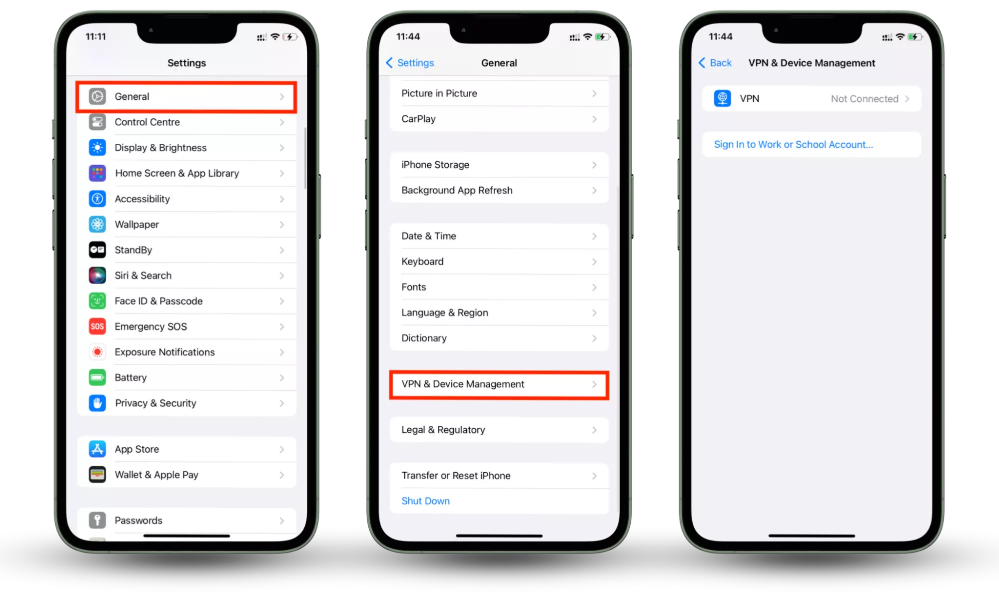 步驟1-2:打開設置>點擊常規>點擊VPN和設備管理。刪除任何可疑配置配置文件。