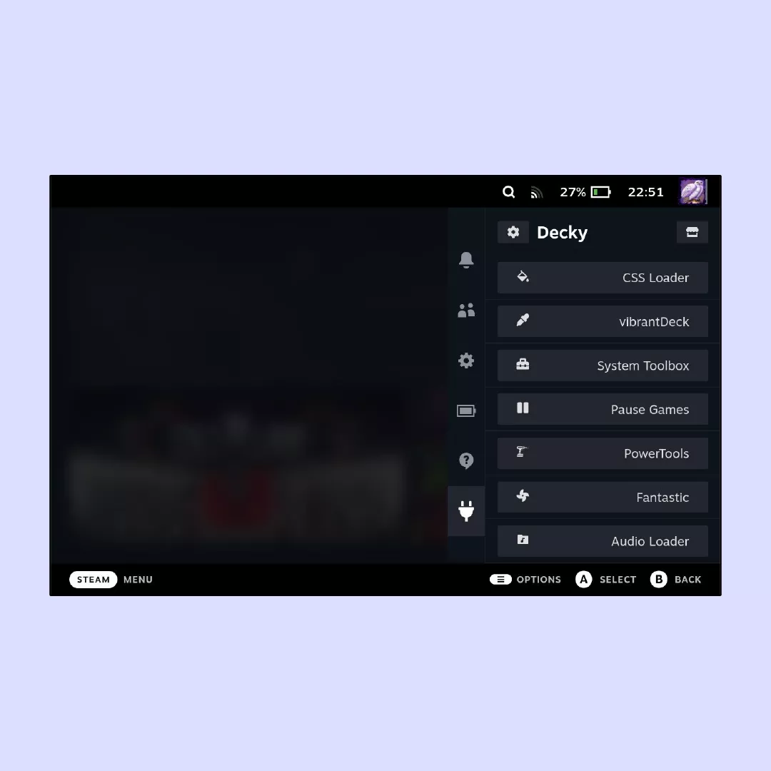 2. 找到位於 Steam Deck 右側的三個水平點。點擊它們並選擇插件加載器。