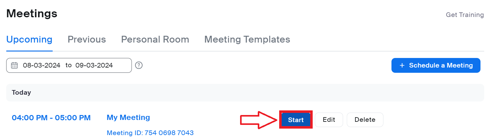 - 安排會議後,前往會議Zoom 應用程序或 Zoom 門戶網站中的選項卡。