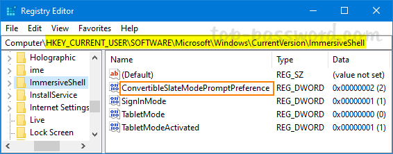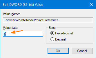 在右側窗格中,雙擊 32-DWORD 值ConvertibleSlateModePromptPreference並將數值數據修改為0或1。如果不存在,則需要手動創建。