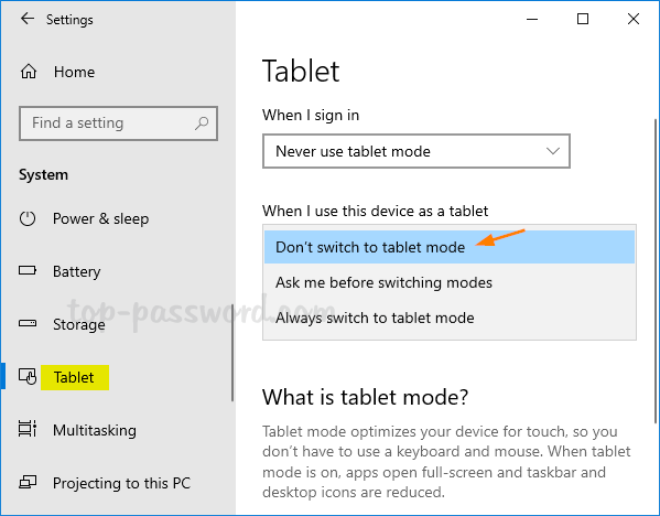 - 不要切換到平板電腦模式– 這將使您的電腦在斷開鍵盤連接時保持桌面模式。