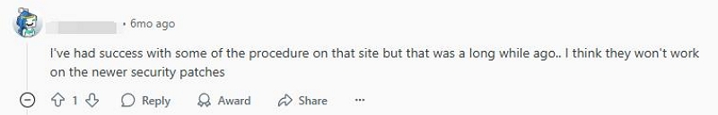 - 舊設備上的成功率:Techeligible 似乎在較舊的設備或具有較舊安全補丁的設備上工作得更好。隨著安全補丁的更新,工具的成功變得更加困難。