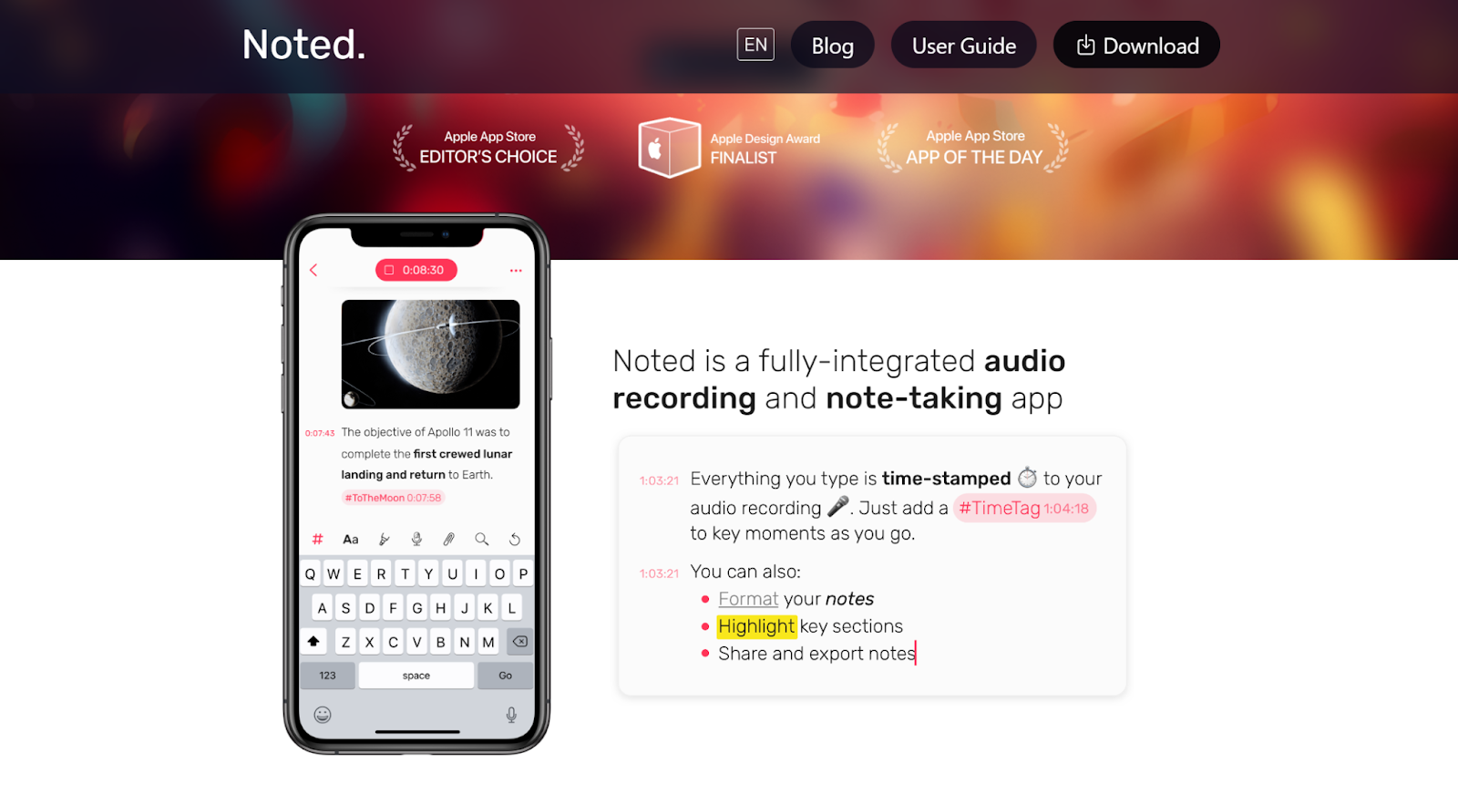 價格:提供基本功能的免費版本。 Premium Noted+ 套餐起價為 4.99 美元/月,提供聽寫、智能播放和可定制主題等高級功能。