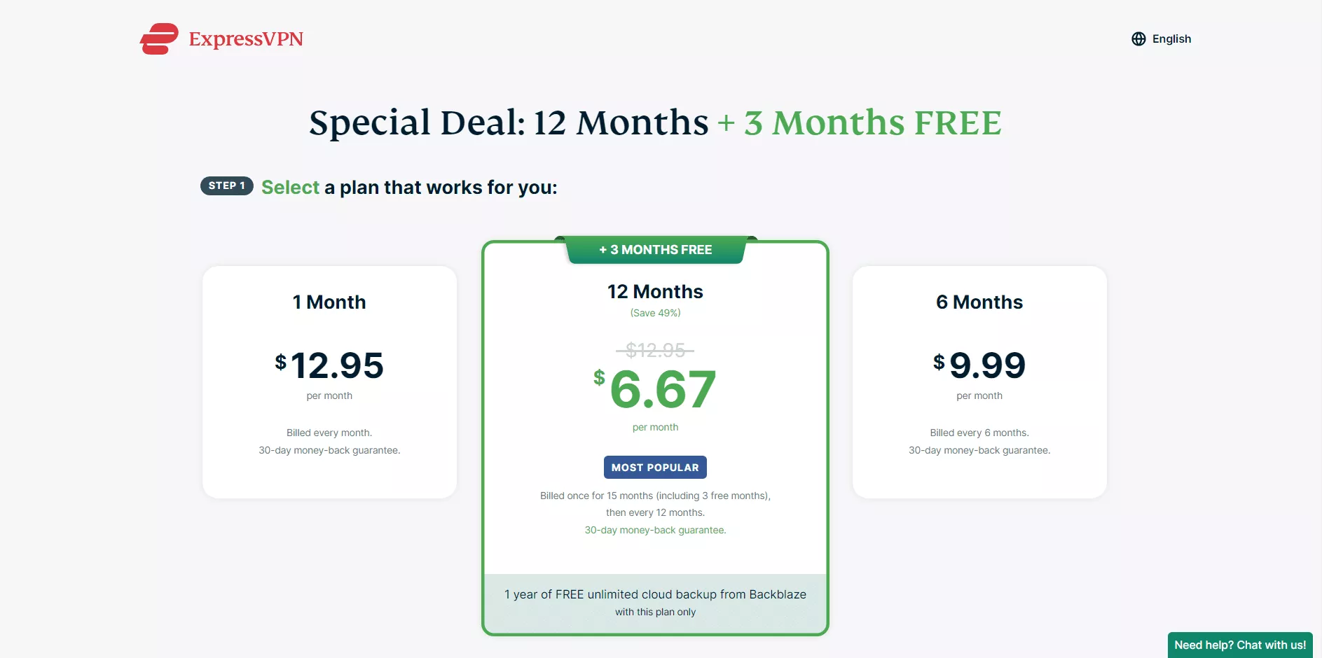 您可以在三種訂閱計劃之間進行選擇,其中 1 年期計劃最受歡迎,每月 6.67 美元。所有優惠均包含 30 天退款保證。