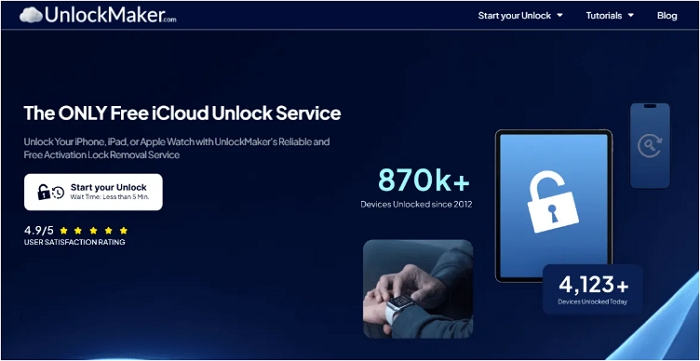 UnlockMaker 是一款在線工具,允許用戶從其 iDevices 解鎖不同類型的鎖,iCloud Activation Lock 就是其中之一。它聲稱可以快速解鎖iCloud鎖,並且兼容所有型號的iPhone、iPad和Apple Watch。
