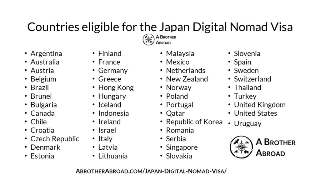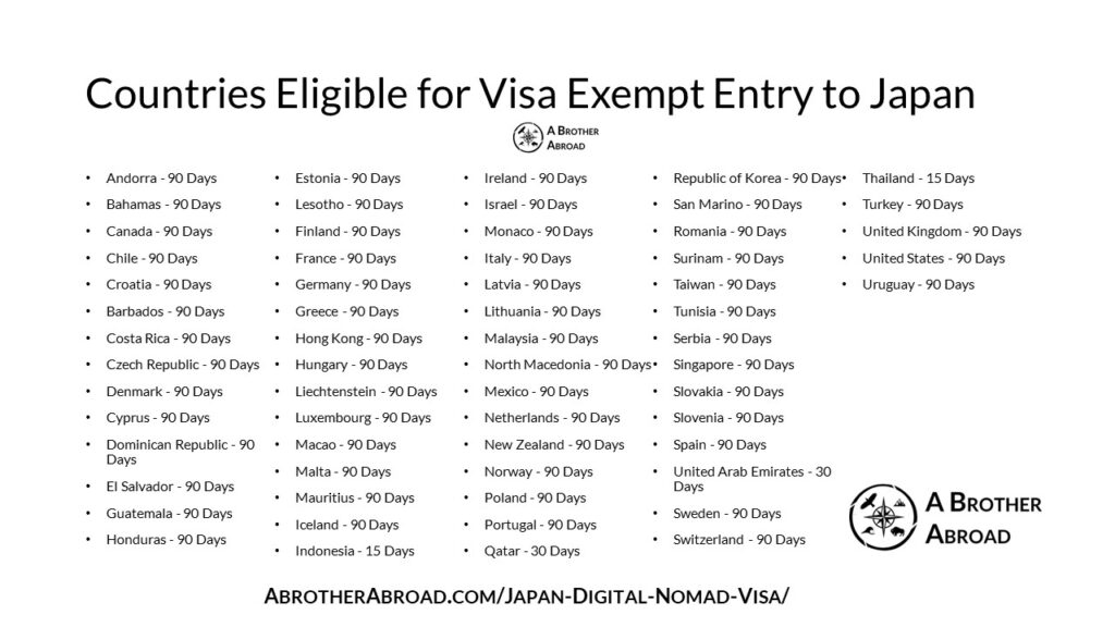 有資格獲得日本免簽資格的國家/地區列表,但不要有資格獲得日本數字游牧簽證,因為日本與該國之間沒有稅收協定